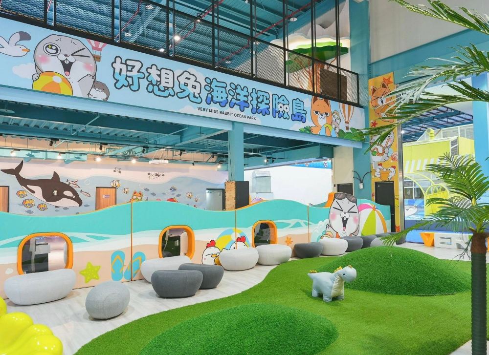 好想兔海洋探险岛是以人气IP「好想兔」为主题打造的沉浸式室内亲子乐园,园区将海洋冒险情节与交互科技结合,设计出梦幻海底隧道、球池冒险、攀爬设施及主题打卡景点等多元体验区。