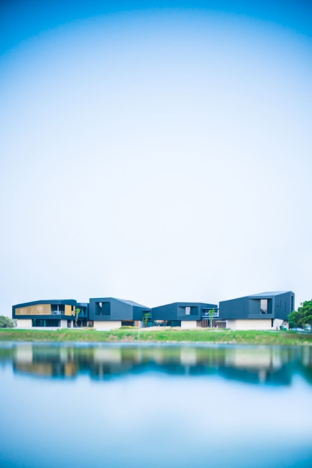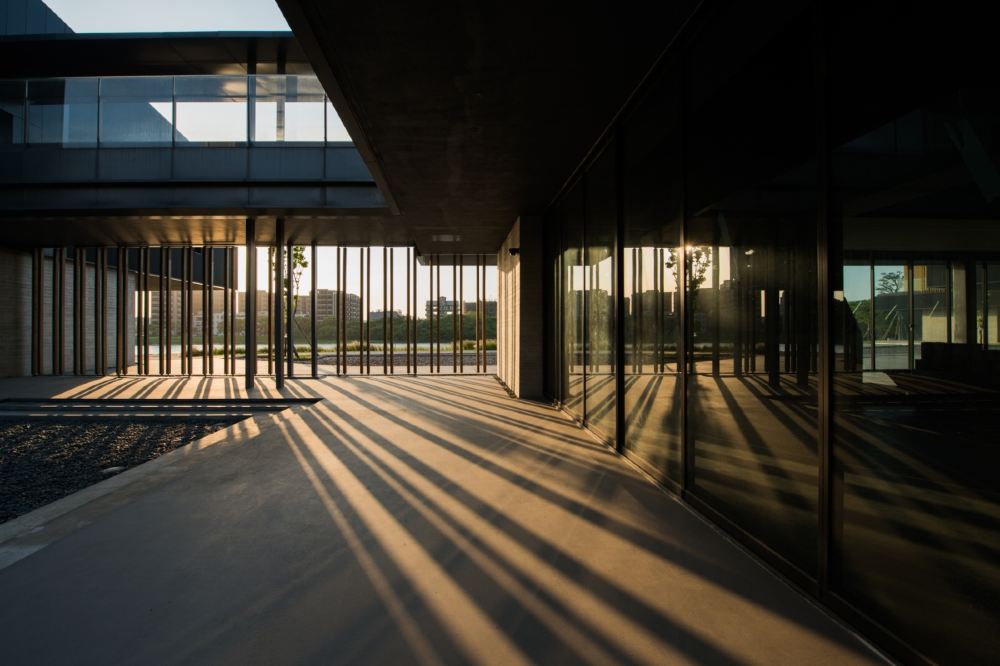 沿用传统地域名称的横山书法艺术馆,坐落于桃园横山陂塘水岸旁。主体建筑由五方印石的造型组成,结合砚台磨墨的意象,于是环抱陂塘与日夕游移的光影轨迹之中,映照与周遭环境相生相应的水墨自然情境。整体建筑荣获2022年台湾建筑奖首奖、2022年全球卓越建设奖金奖、日本2022Good Design Award等奖项,以及十大展览平台的殊荣。
