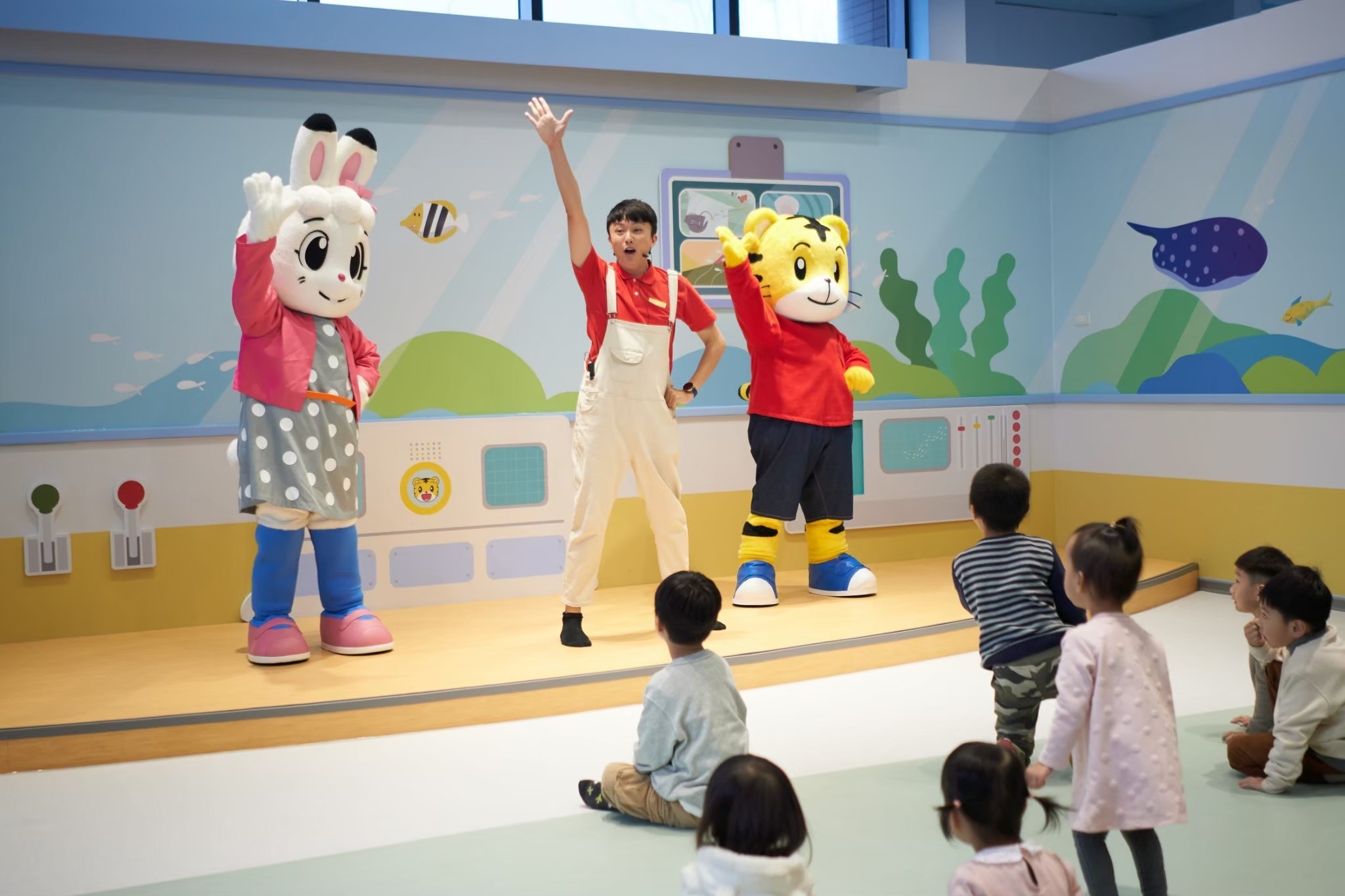 “海洋世界舞台”邀请幼儿教育专家每月共同开发品格教育内容,融入海洋世界舞台的两场演出中,让孩子们在游戏过程中发展各项智能、自信和良好品格。不仅是巧虎,海洋世界舞台上的兄弟姐妹们也热情满满,带领孩子们唱歌跳舞。