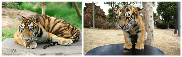 现中园共有成年东北虎14头,成年华南虎1头,幼虎14只,亚成年东北虎2头。展区内以枯木、树皮、乱石为材料,使之“野”味十足。东北虎威风凛凛。素有“森林之王”的称号,它性情孤僻,喜欢独来独往,在游览车辆进入展区后能游客能发现草丛老虎在中不时伸出头警视着游览车辆,仿佛随时都在蓄势待机。