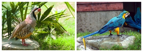 百鸟园占地十余亩,由一个大的铁丝网笼罩而成。园内模范鸟类自然生态环境,建有假山、人工湖、瀑布等人造景观,乔灌木品种多样,错落有致;沿着小道信步而行,你会看到色彩艳丽的红腹锦鸡、典雅的白鹇、能说会道的鹦鹉和常用来比喻新婚夫妇的戏水鸳鸯等二十余种珍稀鸟类。