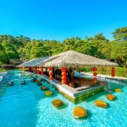 地图森波拉森林温泉是以火山奇景为背景的主题温泉,集山地温泉和峡谷温泉于一体。森波拉温泉水质温和细腻、无色透明,为偏硅酸弱碱性珍稀氟温泉,从地下约1800米深处花岗岩中涌出,日出水量约2000方,水温常年保持在约45C。