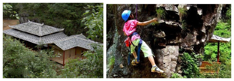 健身项目有:麻雀攀岩、空中飞索、拓展训练营和有氧健身区,组成了这里独特的生态旅游健身休闲区。