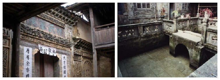 在下梅民居里,至今还保留着十几块古牌匾,内容 大体可分为堂斋题匾、寿匾和敬匾,工艺上阴刻、阳刻、边刻都有。这些牌匾内涵丰富,书法精湛,既记录了下梅村厚重的文化历史,又不失为书法艺术的宝藏。其中,清代军机大臣王杰所书的“施政堂”更是珍品。