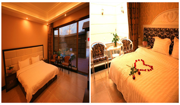 欧式、中式标间:精致的装修,高档的设计,无论是欧式还是中式都是那么的优雅浪漫,置身其中,仿佛梦幻一般。温馨的房间设计,彰显出独一无二的味道。橘黄温暖的灯光,一丝一毫都是享受。