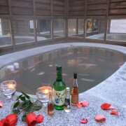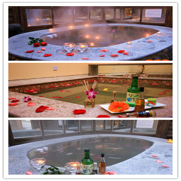 私密露天泡池:温暖舒适的私密露天泡池,水汽氤氲、温润如春。静静地泡在里面,洗去一身的疲惫,洗去尘世的烦恼,给你注入新的活力。忘掉烦恼,只静享此刻的舒适。