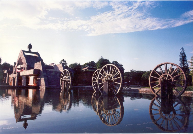 宽阔的广场体现出浓郁的秦代文化,有高达3.9米的中国第一壶--龙耳方壶,壶身夔纹装饰,显得华贵庄重,具有皇家气势;有当时秦始皇号召天下归一的诏版,此诏版显示了灵渠的修建促进了中国南北的统一,有细说湘漓同源的石鼓文,有天下统一后的度、量、衡、文字、货币等,无不显示出秦代的风情气势。