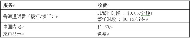 l 香港通话、长途电话以1分钟为1个收费单位,不足1分钟按1分钟收费。