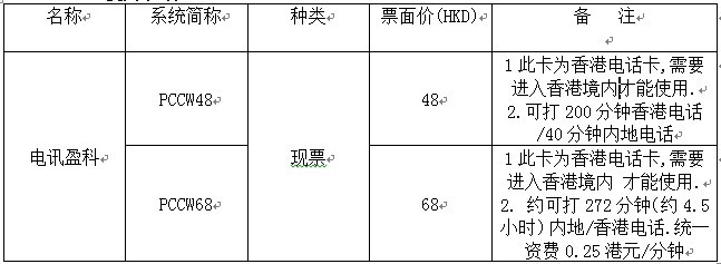 【产品名称】电讯盈科(PCCW)储值通话卡