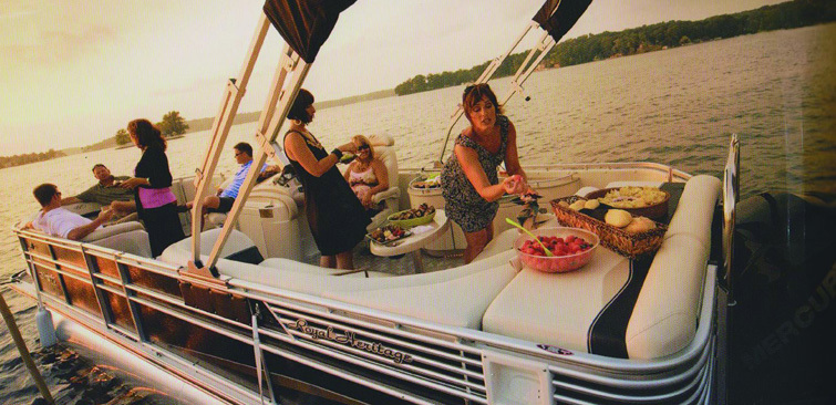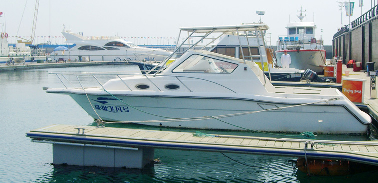 配备:甲板可伸缩式更衣室、豪华地毯、真皮沙发、游泳梯、操作台、驾驶椅、可折叠遮阳篷、挡风板、保温箱、桌子、音响等。