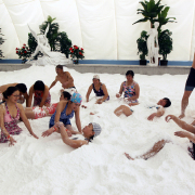 盐滩所用之盐全部采用大汶口天然矿物盐,富含人体所需十几种矿物元素。据《本草纲目》记载:盐能“令肌肤柔韧”,“可治疮,坚肌骨,去皮肤风毒,长肉补皮肤,定痛止痒。”盐有温经通络的功效,可促进人体的血液循环,改善呼吸系统疾病,缓解精神紧张等作用。在盐滩上,您可以带着家人和孩子尽情嬉戏,在“埋人”与“被埋”的游戏体验中养颜健身。