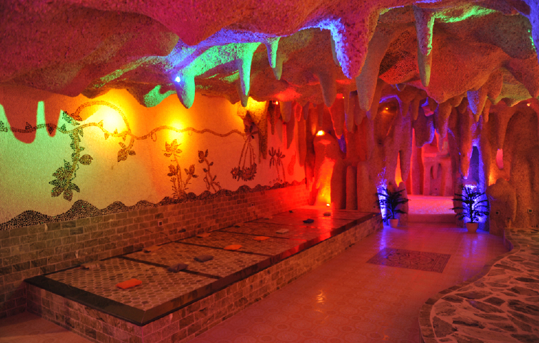 进入泰山盐屋,仿佛走进了神秘的石钟乳山洞。碎盐石装饰成的石钟乳,盐石砖砌成的墙面,矿物盐铺成的白色“雪地”,到处弥漫着盐的芳香。在这里听着舒缓的音乐,享受着柔和的灯光,呼吸着清新的“盐气”,沐浴着盐的浸润,让您在忘情与陶醉中洗礼身心。