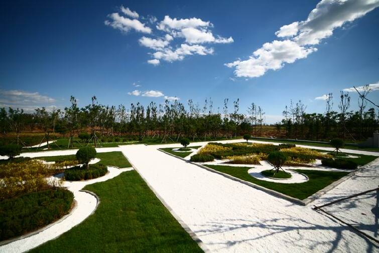 一心:海洋之心,以IFLA国际展园为主体,从全球征集的百余件作品中优选20个集世界风景园林艺术之大成的特色庭院,与海洋科学创意馆、渤海湾水景、花河簇锦4条花带等共同构成错落有致、赏心悦目的中央景观。