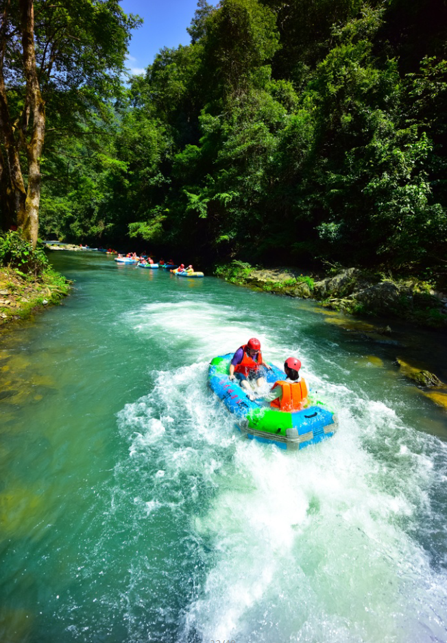 很好玩,在中途和别人打起水战,森林漂流比较平和,看到一位60+的老奶奶也在漂