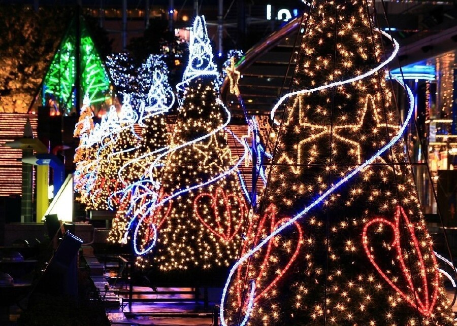 4.河西新城的环球缤纷圣诞村里,有着南京最高的圣诞树,这是在众多树种中精挑细选的唯一一棵被赋予圣诞气息的“神奇”松树,在圣诞树的绿荫下,尽情狂欢,尽情嬉戏,唱出对圣诞的期许及对未来的憧憬,也是整个圣诞村最乐见的事。