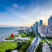 地图五四广场位于青岛市区东南部海滨,广场上矗立着象征青岛城市精神的火红色雕塑“五月的风”,晚上在灯光映衬下非常好看。夏季来这里可享受海景,遥望海湾对面的灯塔和青岛奥帆中心停满的帆船,这里的海上日落也非常美。