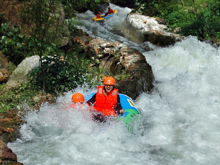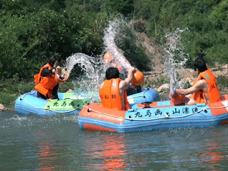 景区峡谷中水流鲜活澄静,空气清新,两岸尽是葱郁植物,大自然的鬼斧神工造就了峡谷奇特的喀斯特地貌,沿途奇弯异转,山峦叠嶂,形成别出心裁的漂流路线。乘橡皮艇在急流中与巨浪搏斗,可以体会到一种全新的惊险刺激,两人乘坐的橡皮艇,安全坚固,一路欢声笑语不绝与耳,尽情享受畅快冒险之旅,勇气和毅力得到全面的提升,一漂一景的独到设计,漂流途中每一个休憩处都有观景区。纵情飞舟,投身自然,摇拽之中邂逅九马画山一隅,让游客们漂在峡谷中观望漓江山水,可以欣赏到多角度,多层次的秀丽风光。