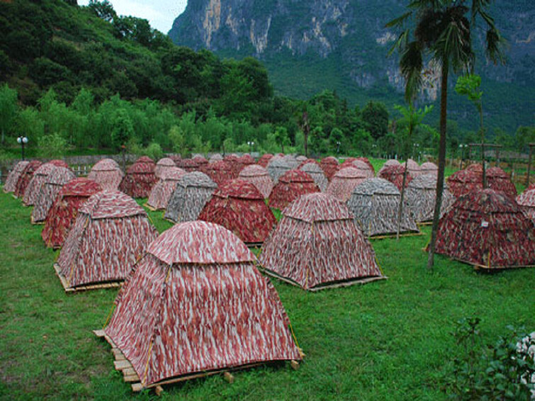 九马画山峡谷漂流风景区为喜爱亲近大自然的朋友准备了过夜的帐篷,一顶帐篷适合两人露营。夜风起的时候,去漓江游个泳吧,清凉的野风吹走你一身的疲惫,星光下,月影里,在一起享受山野的静谧和原始的回归。