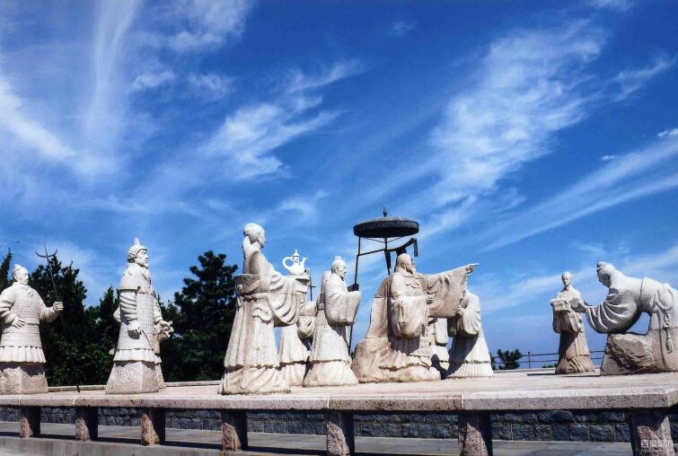景区建设融古建筑、园林、雕塑艺术为一体,由战国风情、秦皇求仙苑、仙人祠以及游乐园等部分组成,大门为秦风阙门,正门横匾上的“秦皇求仙入海处”几个大字是赵朴初先生的真迹。来到“秦皇求仙入海处”。进了大门,战国时代七国的国旗矗立着,大树郁郁蓊蓊,当时许多英雄的雕像林立在那。进入了秦国,一队铜马车展现眼前,黄灿灿的,直耀眼,不用说坐在车里的就是威武的“千古一帝”秦始皇。顺着求仙路走下去,路的两旁雕刻着许多童男、童女,他们姿态不一,惟妙惟肖,脸上露出了淡淡的微笑。