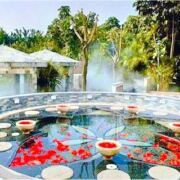汤峪温泉碧水湾背枕青山,胶林如海,椰林婆娑,环境极好;温泉热气袅袅升腾,如云似雾,有如天宫瑶池。碧水湾内建有天圆地方池、桑拿浴、石板浴、五福汤(即福、禄、寿、禧、财)、独立汤院、皇室御汤院。温泉旁有水上疗吧、水上烤吧、太白酒吧、唐盛剧场、民俗食府等,泡完温泉之后去小憩一下也是不错的选择。