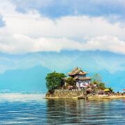 岛上可参观的地方较少,更多游客还是选择在岸边给小普陀拍照。晴天时,苍山和洱海都在背后,一座小岛和楼阁独立湖中,画面奇幻而又美丽。每当成群的海鸥飞过时,画面更加动人。花几块钱买一包饲料喂海鸥,会是十分有趣的体验。