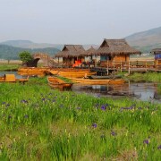 乘坐一叶扁舟,徜徉在优美宁静的湖水之上,穿梭在浮毯草排之间。在尽情感受湿地风景之余,您还可以听到船夫们献上的一曲曲原汁原味的极边小调,无不令人心旷神怡……