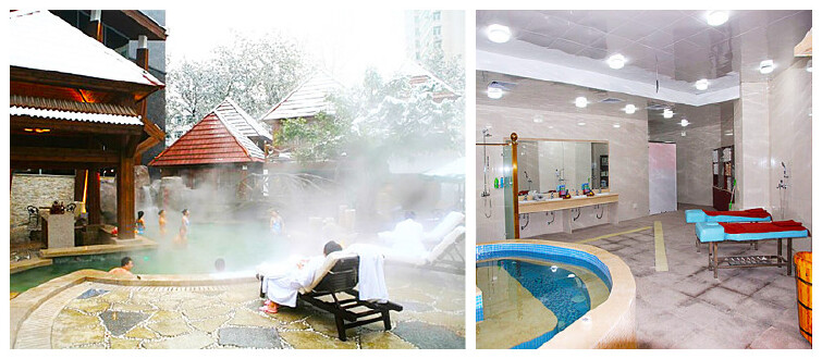 温泉热浴不仅可使肌肉、关节松弛,消除疲劳;还可扩张血管,促进血液循环,加速人体新陈代谢!此外,大多数温泉中都含有丰富的化学物质,对人体有一定的帮助。比如,温泉中的碳酸钙对改善体质、恢复体力有相当的作用;而硫磺泉则可软化角质,含钠元素的碳酸水有漂白软化肌肤的效果。
