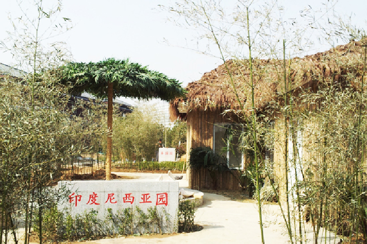 印度尼西亚园以“活力印尼花园 美好泗水”为主题,采用印尼当地的泗水式建筑,即运用竹片墙、棕榈屋顶、椰树亭、碎石涉汀步道,配以绿竹、芭蕉等植物,将该园区布置为一处地地道道的印尼原土著民族的“生活馆”,打造印尼原土著民族的生活场景。