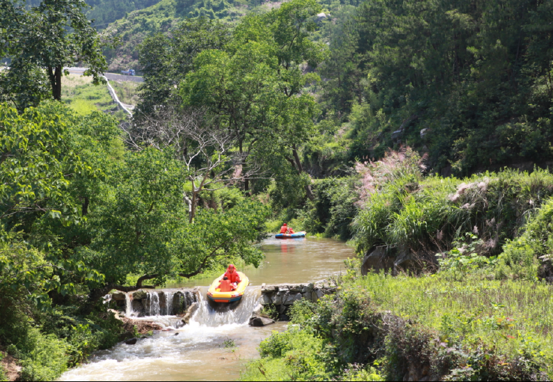 河道全长6.7公里,分为三段:第一段为“山洞梦幻漂”,第二段为“激情浪漫漂”,第三段为“欢乐怡人漂”,漂流总落差在168米以上,共有6潭、9瀑、18滩;两岸鲜花竟相开放,与青山、林涧、小鸟相映成趣;沿途还有茶麻古道、万亩竹海、娘娘坟祭母等丰富的民间传说,有刘邓大军千里路进大别山的足迹,有敦煌莫高窟的发现者王圆录故居、有万亩杜鹃花海,天下第一龟和凤凰寨”天下第一门“”天下第一锁”,有唐朝李世民、程咬金等历史人物足迹等深厚文化,有老米酒等特产。