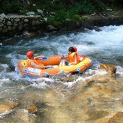 地图 川龙峡勇士漂从钓鱼岛出发,终点在清潭,全长5公里,漂流时间为两个小时;整个漂流过程中,总共有十三个大落差,总落差186米,最高落差的地方高达10米,有大小落差三十多处。 川龙峡勇士漂流是目前业界内河道保持最天然,生态保持最好的漂流,以水急、石怪、山秀、安全受到旅游爱好者的热烈追捧。下险滩、飞越激浪,有惊无险;过深潭、追波逐浪,听鸟观鱼。身临其境既可领略旖旎的自然风光,又可拥抱大自然的无限乐趣。山在雾中,人在画中,恰似一幅情趣盎然的精品画。 在激流的撞击下,橡皮艇如离弦之箭,向前冲刺。险滩、礁石扑面而来,几乎要把橡皮艇掀翻,却有惊无险。橡皮艇又义无反顾地驶入平缓的水潭中慢条斯理地荡漾。心灵深处得到一次酣畅淋漓的释放。