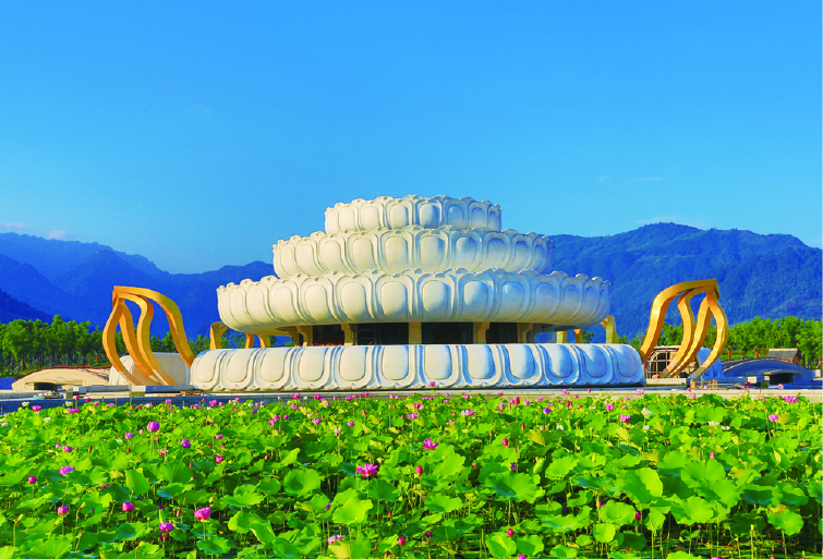 园区四大奇观彰显吉祥光明。地藏宫,国内最大的地藏文化展示中心,采用木雕、石雕、瓯塑、铜雕、彩绘等形式,全方位弘扬地藏大愿精神。净土莲花,经典的汉白玉莲花雕塑。四周260平方米巨型琉璃壁画,精美绝伦,展现净土极乐世界的庄严美好。九华飞天,曼妙庄严的铜铸动态群雕,喻意“八功德水敬地藏,九华飞天送吉祥”。地藏王菩萨圣像,圣像及莲花座总高99米,为世界第一高地藏王菩萨露天铜像。