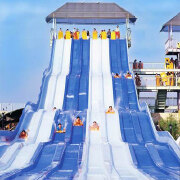 巨兽碗滑道:华北地区首家引进的“巨兽碗”滑道,游客坐在特别设计的四叶草型浮圈,从20米高的平台下滑,通过一段长达80米半透明的管状滑道之后,高速冲进一个直径为20米的巨碗,在巨碗中经多次螺旋旋转,再冲入碗底,然后美妙滑出,让游客体验无与伦比的滑行感受。