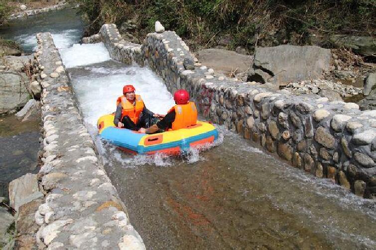 漂流全程3.5公里,整体落差114米,河道前半段是充满激情的勇士之漂,最大垂直落差达13米的滑道让您体验过山车般的惊险刺激,河道后半段是充满浪漫的休闲之漂,让您在激情之余悠然泛舟,畅享静谧的田园风光。