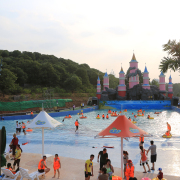 滨水休闲区(水上游乐区):主要以水上活动为主题,有激流勇进(漂流)、飞越彩虹桥、冲天回旋滑梯、儿童戏水区、标准游泳池,项项乐人,尽情游玩。