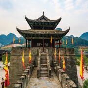 地图大明边城位于铜仁市东郊,于水晶阁沿锦江右岸展开。整个景区以明朝为主题,充满了文化韵味,在此可以了解明朝以来贵州600年的历史文化。