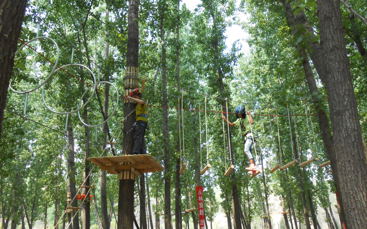 穿越体验,通过在林间设置并搭建各种难易不同、风格迴异、超强刺激的关卡课程,让你体验高空坠落与自由滑翔的快感,感受树上攀爬与林间穿越的刺激。丛林穿越挑战自我,热爱大自然,追求低碳出行、回归自我,回归本能,健康开放的美好形象!丛林穿越挑逗你的体能与胆量,激发你的潜能,展现你的勇敢和机智;让你在喧闹的城市中尽情体验树上探险,在拥抱绿色、回归自然的同时,挑战自我的心灵极限。