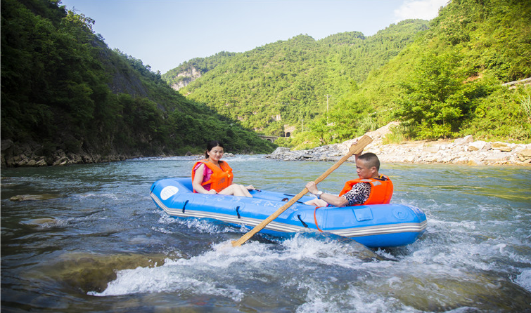 整个漂流河道植被茂密,十里峡谷长廊、绝壁一线天,在峡谷中穿越而过,顺峡谷婉转而出,发出潺潺声音,一路青山绿水伴随在左右。