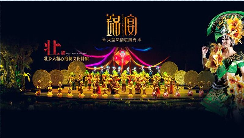 大型风情歌舞秀《锦宴》,是由南宁锦宴文化产业有限公司最新推出的大型旅游演艺项目。项目位于南宁国际会展中心内,剧场占地5000平方米,设700个观众席位。四周交通便利、酒店林立,餐饮配套齐全。大型风情歌舞秀《锦宴》,集广西少数民族奇异风情及原生态歌舞于一体,加之最先进的高科技舞台手段及强大的演出阵容,为来南宁旅游的四海宾朋捧上了一道丰盛的文化大餐。