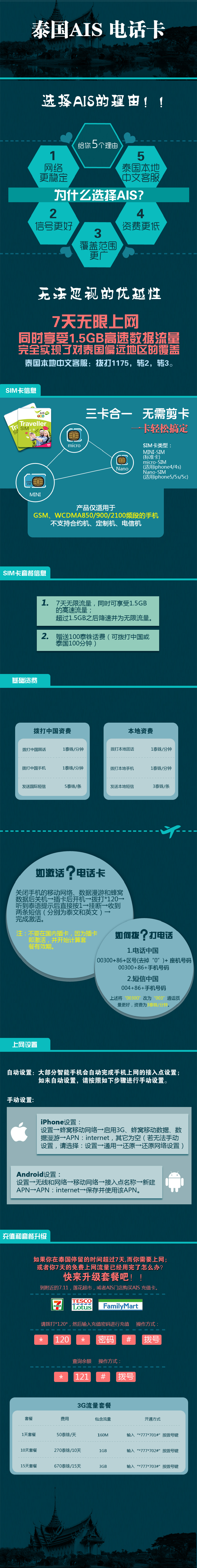 1.激活方法:关闭手机的移动网络、数据漫游和蜂窝数据后关机→插卡后开机→拨打*120→听到泰语提示后直接按1→挂断→收到两条短信(分别为泰文和英文)→完成激活;