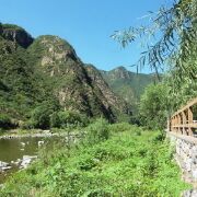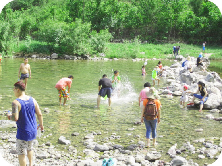 京西碧河湾自助烧烤站紧靠着109国道51公里处,永定河畔,水从小院前缓缓穿行,水四季常流,因水中大石高于水面,可清晰的听到水流拍打石面的哗哗声。河中有小鱼小虾,因河水极清,几十米外下游处几米深河水仍可清澈见底,院前的浅水处确成的儿童的嬉戏乐园,有不少的年轻父母在帮着小家伙们捉小鱼小虾,不少人脱掉了鞋子,光着脚丫在河水互相泼洒着水,仿佛回到到童年,甚至还有相互不认识的年轻人也加入了同样的“战斗”中,等战斗结束后,你看不到一个人能全身而退,全湿掉,真是玩的不亦乐乎。喜欢“安静”的年轻情侣坐在河边的石头上亲亲我我,真是羡煞旁人啊!