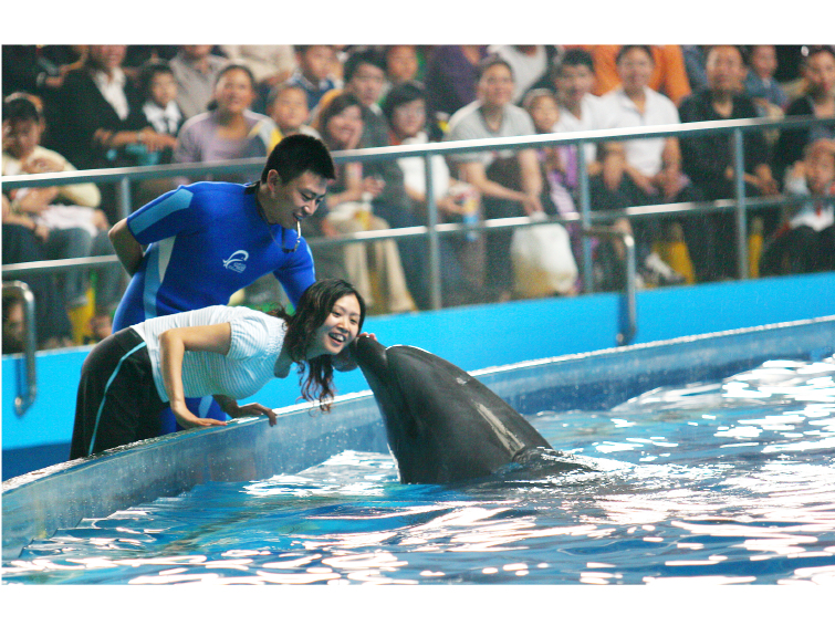 世界最大的室内极地海洋动物表演场可容纳3600人同时观看,四只白鲸、八只海豚、六只海狮同台演出,将把来自极地海洋世界的震撼与温馨,真实、强烈的传递给在场每一位观众。