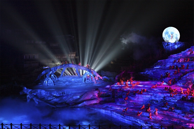 地图天门狐仙是世界上第一台大型山水实景音乐剧。该剧在国内顶尖制作队伍的精心策划和创意设计下,借助天门山不可多得的奇美山水,通过灯光、音响、舞台机械、数码影像等设施的优化配置,运用高科技的视觉特效手段,将音乐、舞蹈、歌曲、魔术、杂技等多种艺术元素融于一体,实现了艺术表现力和视觉冲击力的完美融合,为观众奉献上了一场气势恢宏磅礴、场面奇幻绚丽、情节生动感人、歌舞美轮美奂的艺术盛宴,在中国山水实景演出历史上具有里程碑意义。