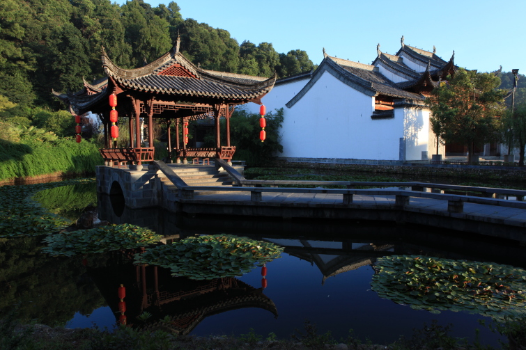 村中既有保存尚好的御史府,中宪第等明清官邸,又有滕家老屋、三省堂、敦崇堂、培心堂等徽派商宅,其中“仙人桥”是古人实践风水理论的杰出典范,“北斗七星井”体现了”天、地、人合一”的中国风水学最高原则,南侧梨园河呈太极图“S”形,古村古风古韵,极具历史价值和观赏价值。