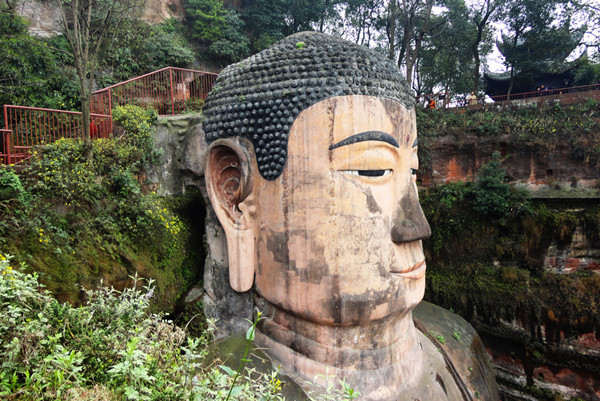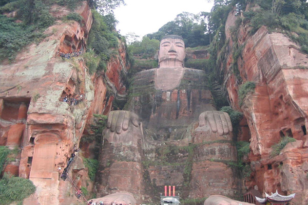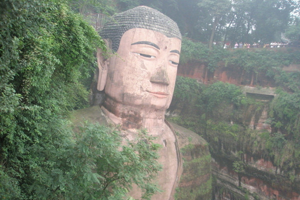 在风景壮丽的四川乐山,在大渡河、青衣江、岷江的合流处,端然正坐着一座高达七十多米的佛像,它比号称世界第一大雕刻的阿富汗帕米央大佛站像,还高二十多米。在乐山大佛头的螺髻上面可以容十多人围坐,耳朵空隙可并立两人,双足相距近十丈,两个人接卧也不及大佛的一个脚趾长,一个人站立脚旁也未能高出脚面。隔江遥望,才能观看到大佛的全貌。