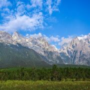 地图甘海子位于玉龙雪山脚下,曾经是一片湖泊湿地,后来干涸成为一片茂密的高山草甸。草甸非常开阔,是优良的牧场,而且这里距离雪山很近,可以看到玉龙十三峰,是仰拍玉龙雪山全貌非常好的地方。